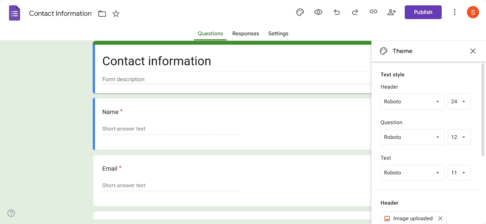 Microsoft Forms takes advantage of AI for creating form questions. You can get suggestions and add questions with a single click if you like them.