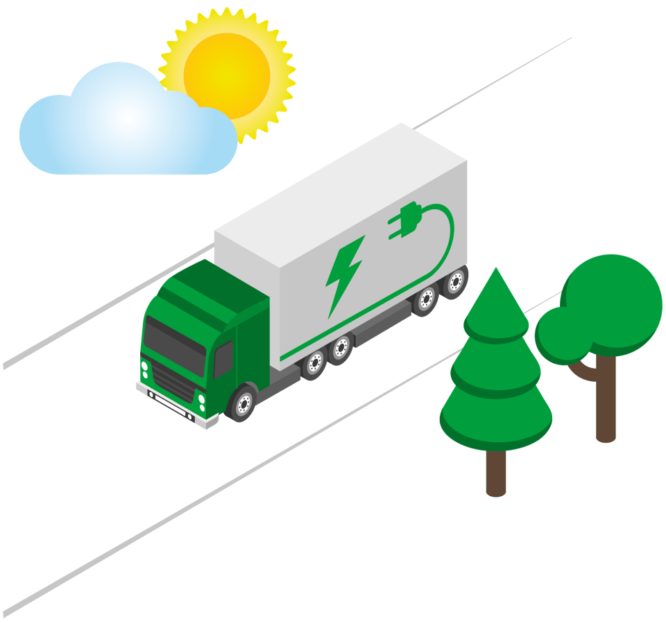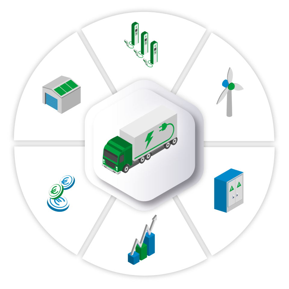 3 - an e-truck with its own generation through solar panels, a battery and smart purchase of energy (an energy system).